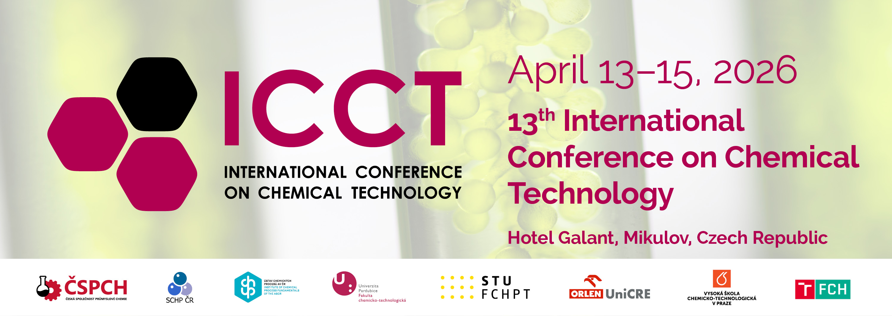 It is once again our great honor and pleasure—on behalf of the Executive Committee of the Czech Society of Industrial Chemistry—to invite you to the 13th International Chemical Technology Conference (ICCT), taking place in Mikulov in 2026.